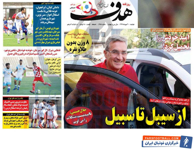 عناوین روزنامه هدف ورزشی دوشنبه ۳۰ مهر به شرح زیر است:
