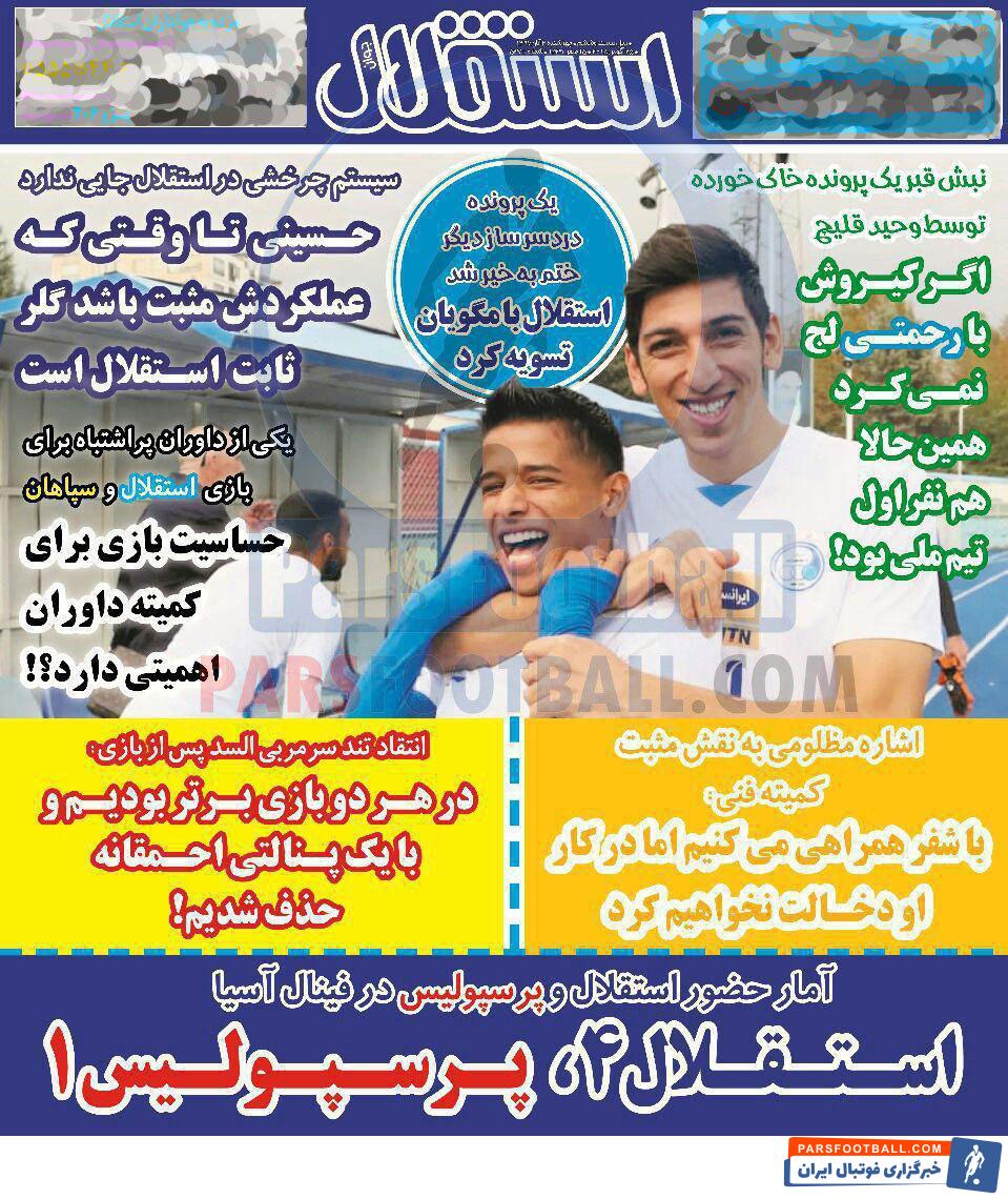 مرور عناوین مهم روزنامه استقلال جوان چهارشنبه 2 آبان ماه