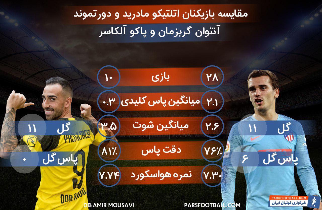 دو تیم اتلتیکو مادرید و بورسیا دورتموند تا ساعتی دیگر به مصاف هم می روند و به بررسی عملکرد آنتوان گریزمان و پاکو الکاسر می پردازیم.