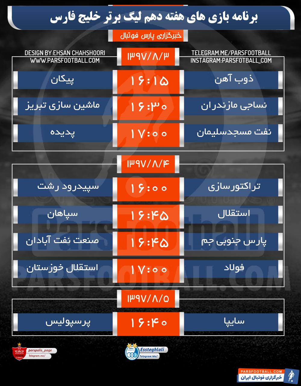 اینفوگرافی؛ برنامه بازی های هفته دهم لیگ برتر خلیج فارس مشخص شد