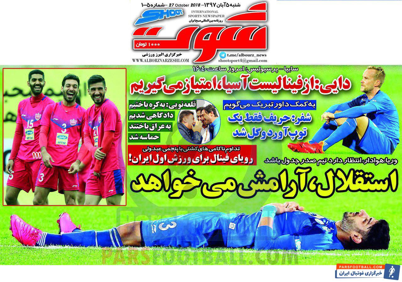 عناوین روزنامه شوت ۵ آبان به شرح زیر است: