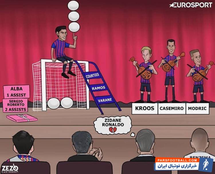 رئال مادرید مقابل تیم بارسلونا متحمل شکست سنگین پنج بر یک شد و نشریه یورو اسپرت در خصوص این الکلاسیکو کاریکاتوری منتشر کرد.