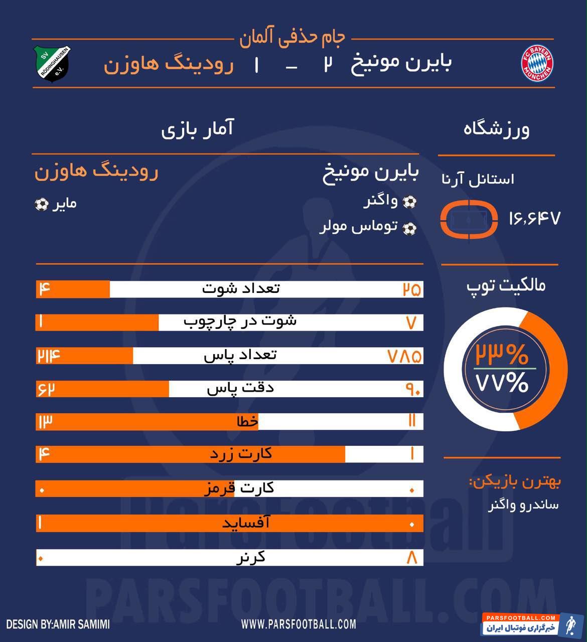 اینفوگرافی اختصاصی؛ آمار و ارقام دو تیم بایرن مونیخ و رودینگ هاوزن در جام حذفی