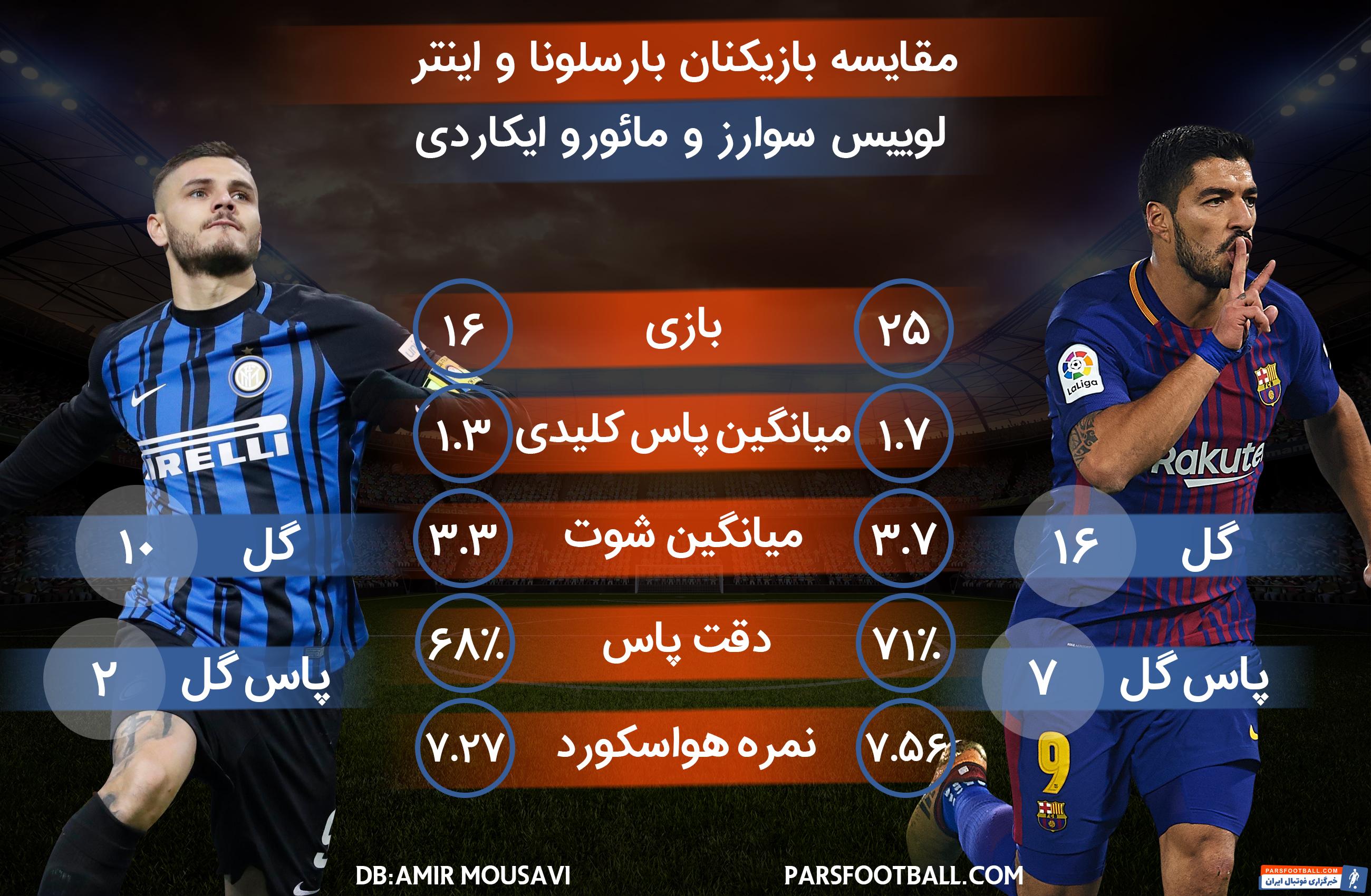 دو تیم فوتبال بارسلونا و اینتر در هفته چهارم لیگ قهرمانان اروپا به مصاف هم می روند و به بررسی عملکرد لوییس سوارز و مائورو ایکاردی می پردازیم.