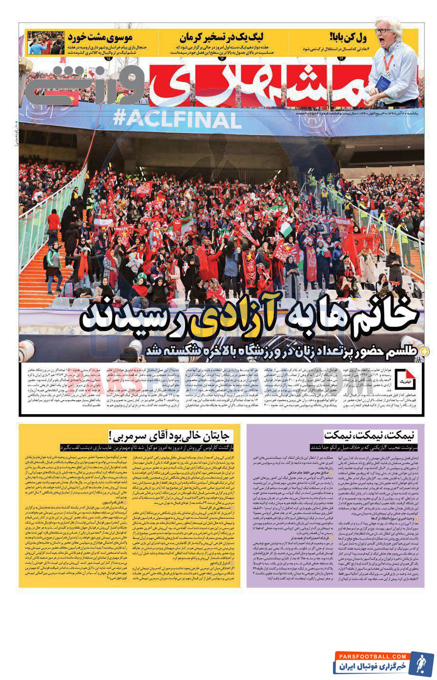 دکه پارس فوتبال؛ روزنامه همشهری ورزشی؛ خانم ها به آزادی رسیدند؛ طلسم حضور پرتعداد زنان در ورزشگاه آزادی بالاخره شکسته شد