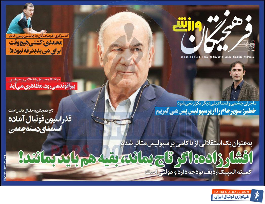 عناوین روزنامه فرهیختگان ورزشی پنجشنبه ۲۴ آبان ماه به شرح زیر است :