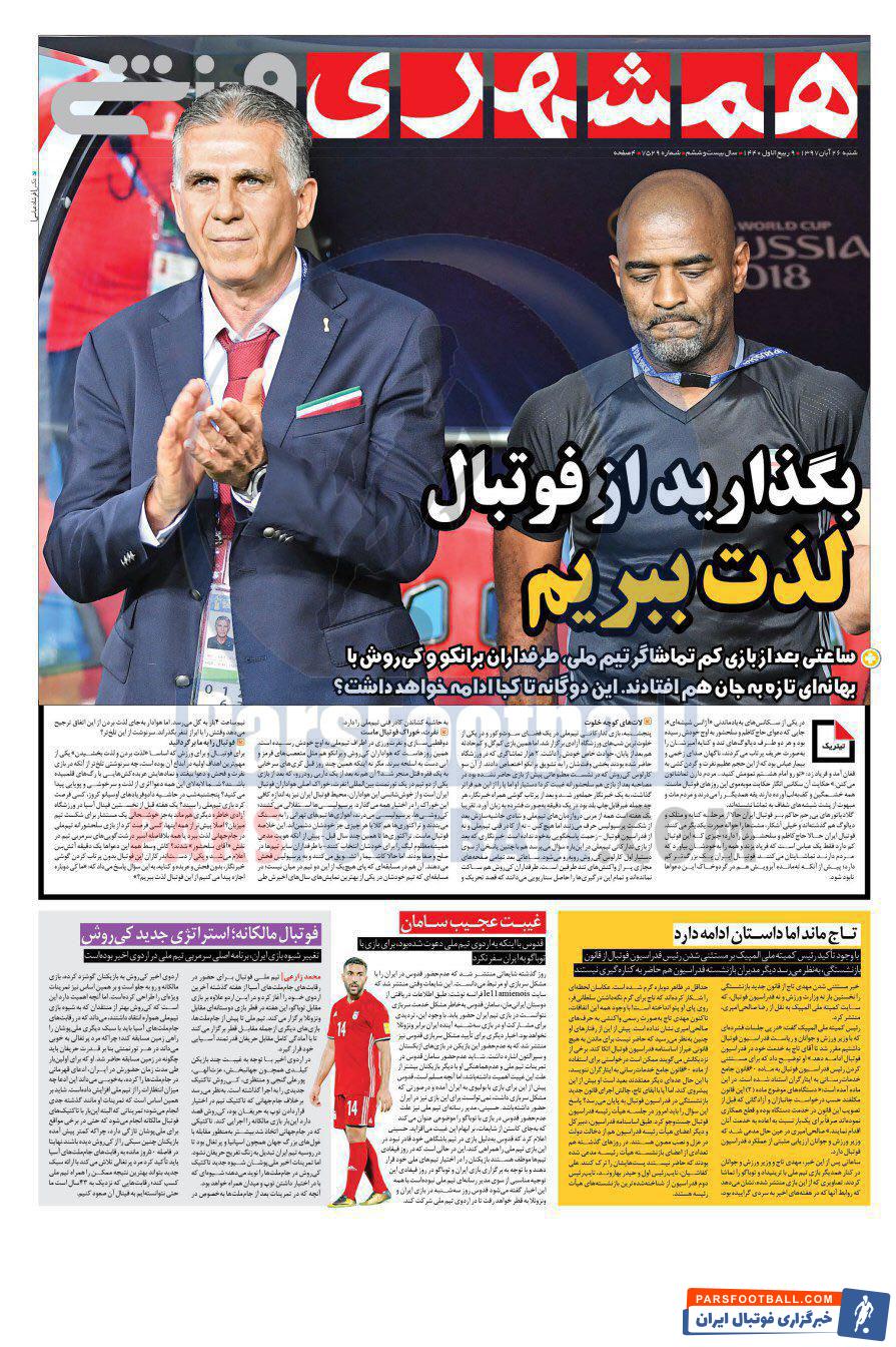 مرور عناوین مهم روزنامه همشهری ورزشی شنبه 26 آبان 97