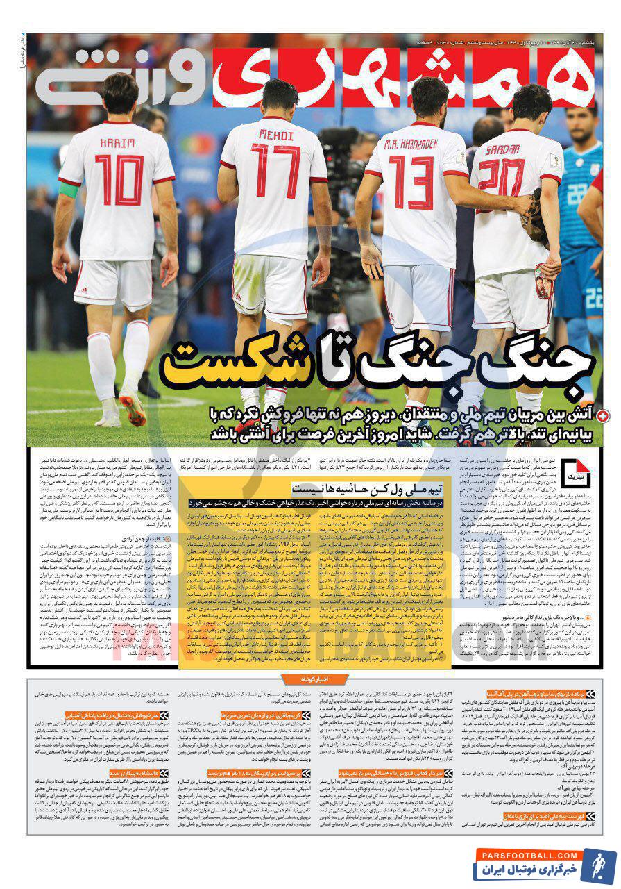 دکه پارس فوتبال؛ روزنامه همشهری ورزشی؛ جنگ جنگ تا شکست: انتقاد تند رسانه ها و کارشناسان از رفتار تنش زای کارلوس کی روش!