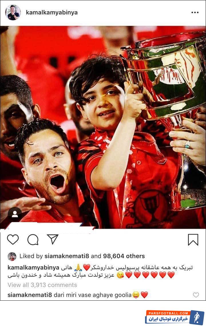 ساعاتی پیش و در حالی که پرسپولیس با گل دقایق پایانی نیمه اول از پیکان عقب بود، ضربه سر کمال کامیابینیا در دقیقه ۷۷ بازی امیدهای سرخپوشان را زنده کرد تا در نهایت بازی را با برد ۲ بر یک به پایان ببرند. کمال به همین مناسبت پستی در اینستاگرام به اشتراک گذاشت و ضمن تبریک این پیروزی به هواداران، سالروز تولد هانی نوروزی فرزند کاپیتان ابدی پرسپولیس را تبریک گفت و نوشت: