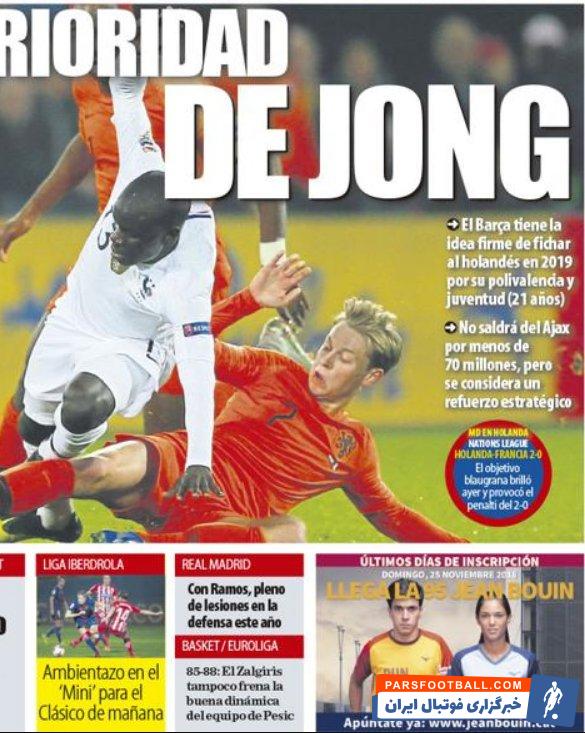 همانند روزنامه اسپورت، موندو دیپورتیوو نیز یکی از دو ستاره هلندی آژاکس را روی جلد برد و برخلاف اسپورت، فرنکی دی یانگ را اولویت خرید بارسلونا معرفی کرد بازیکنی که بارسلونا از تابستان قبل به شدت به دنبال جذبش بوده است.
