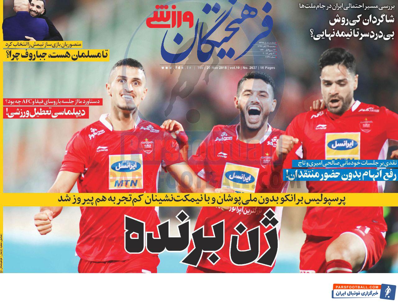 مرور عناوین مهم روزنامه فرهیختگان ورزشی سه شنبه 29 آبان 97
