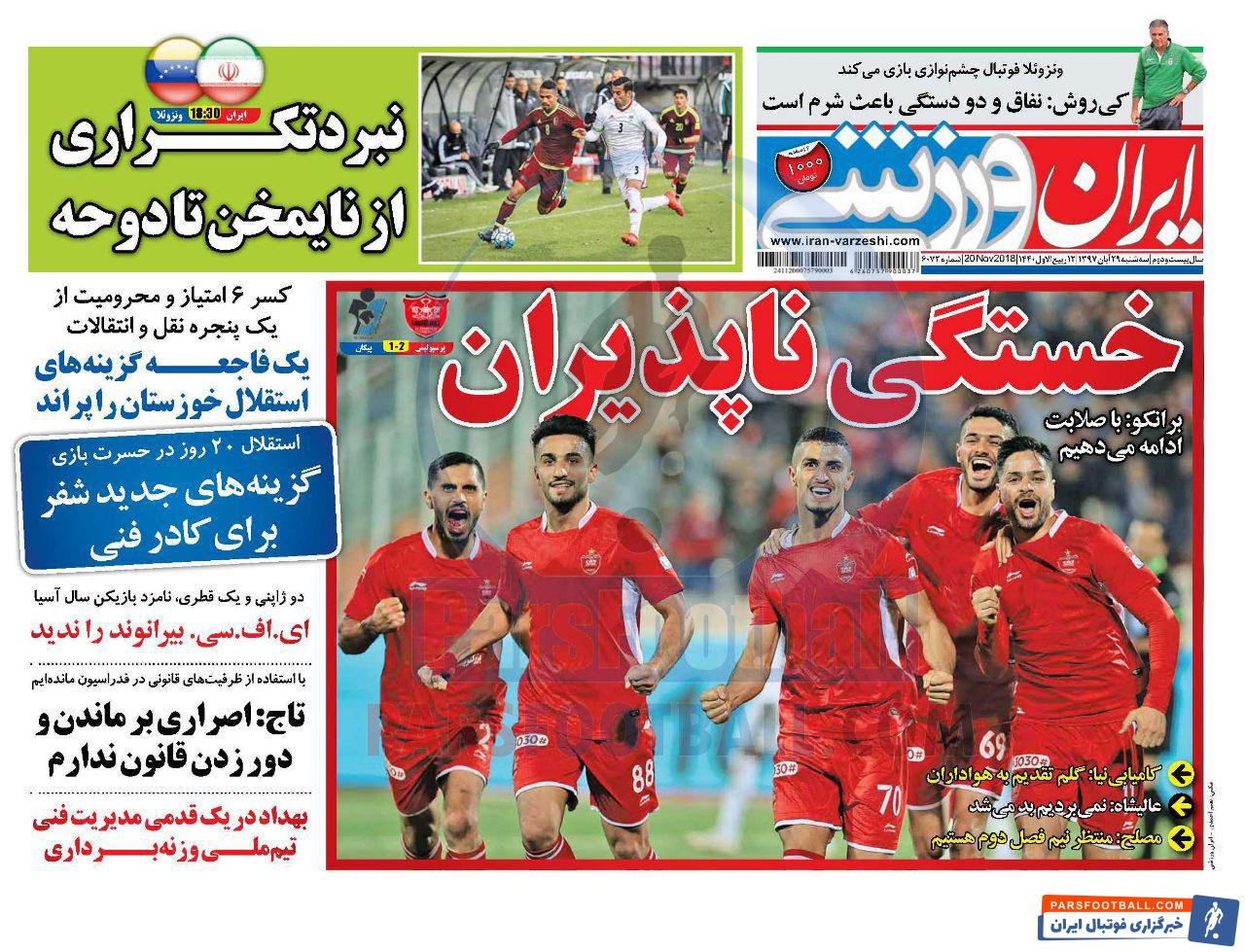 عناوین روزنامه ایران ورزشی سه شنبه ۲۹ آبان ماه به شرح زیر است :