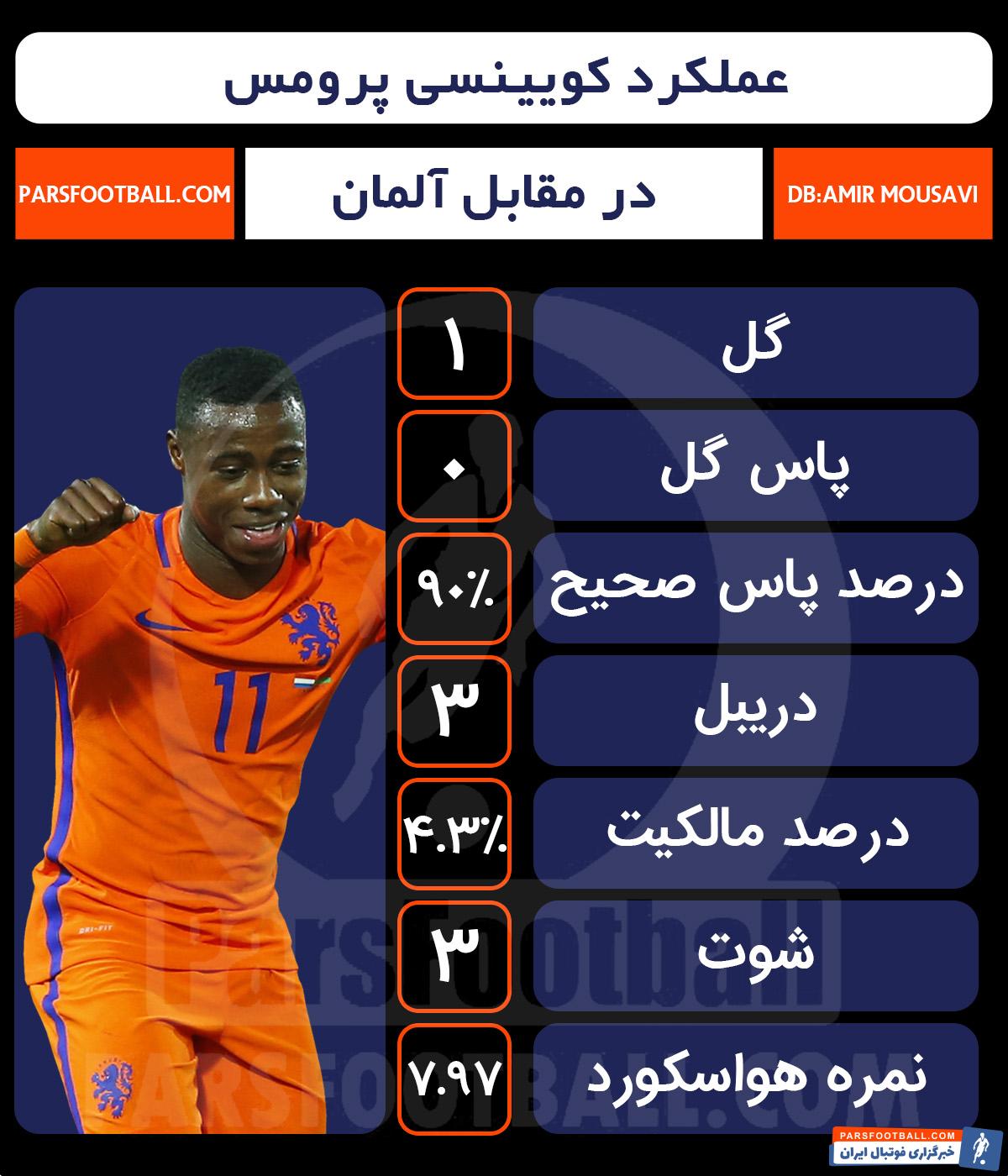کویینسی پرومس ستاره هلندی موفق شد برابر آلمان ، یک گل به ثمر برساند عملکرد فوق العاده ای از خود به نمایش بگذارد.