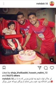 پست اینستاگرامی مهدی شریفی برای تولد کودک هوادار پرسپولیس