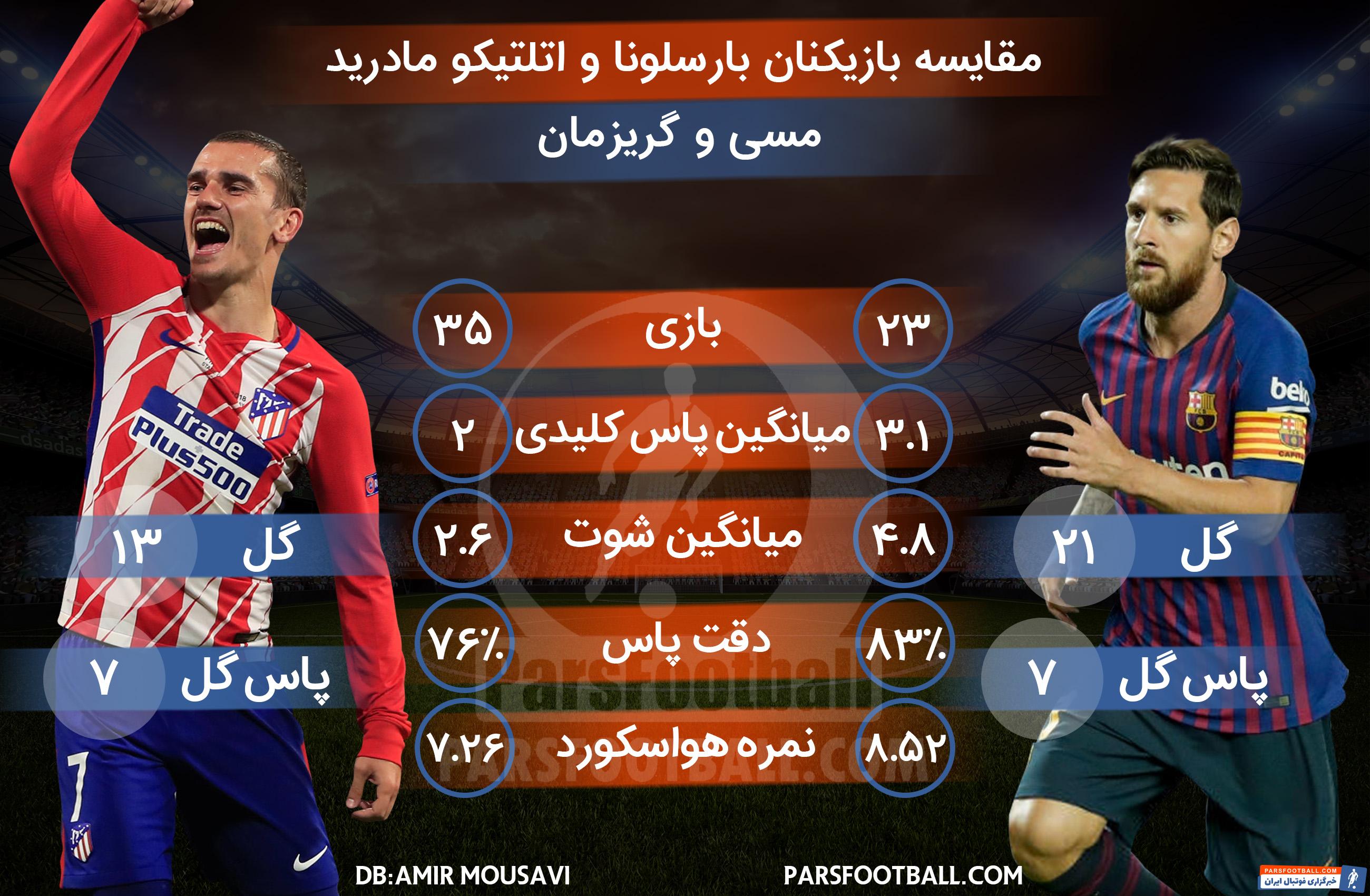 اینفوگرافی؛ پیش بازی؛ نگاهی به عملکرد بهترین بازیکن دو تیم بارسلونا و اتلتیکو مادرید