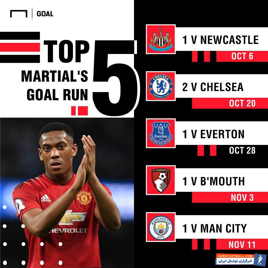 مارسیال به دنبال گل زدن در شش بازی پیاپی لیگ برتر