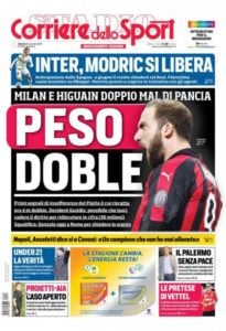 عناوبن نشریه‌ی کوریره دلو اسپورت در روز جمعه ۲۳ نوامبر به این شرح است :