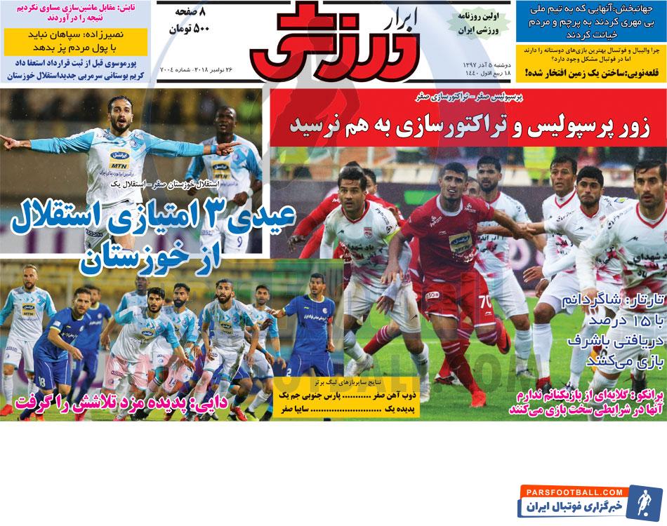 عناوین روزنامه ابرار ورزشی دوشنبه ۵ آذر ماه به شرح زیر است :