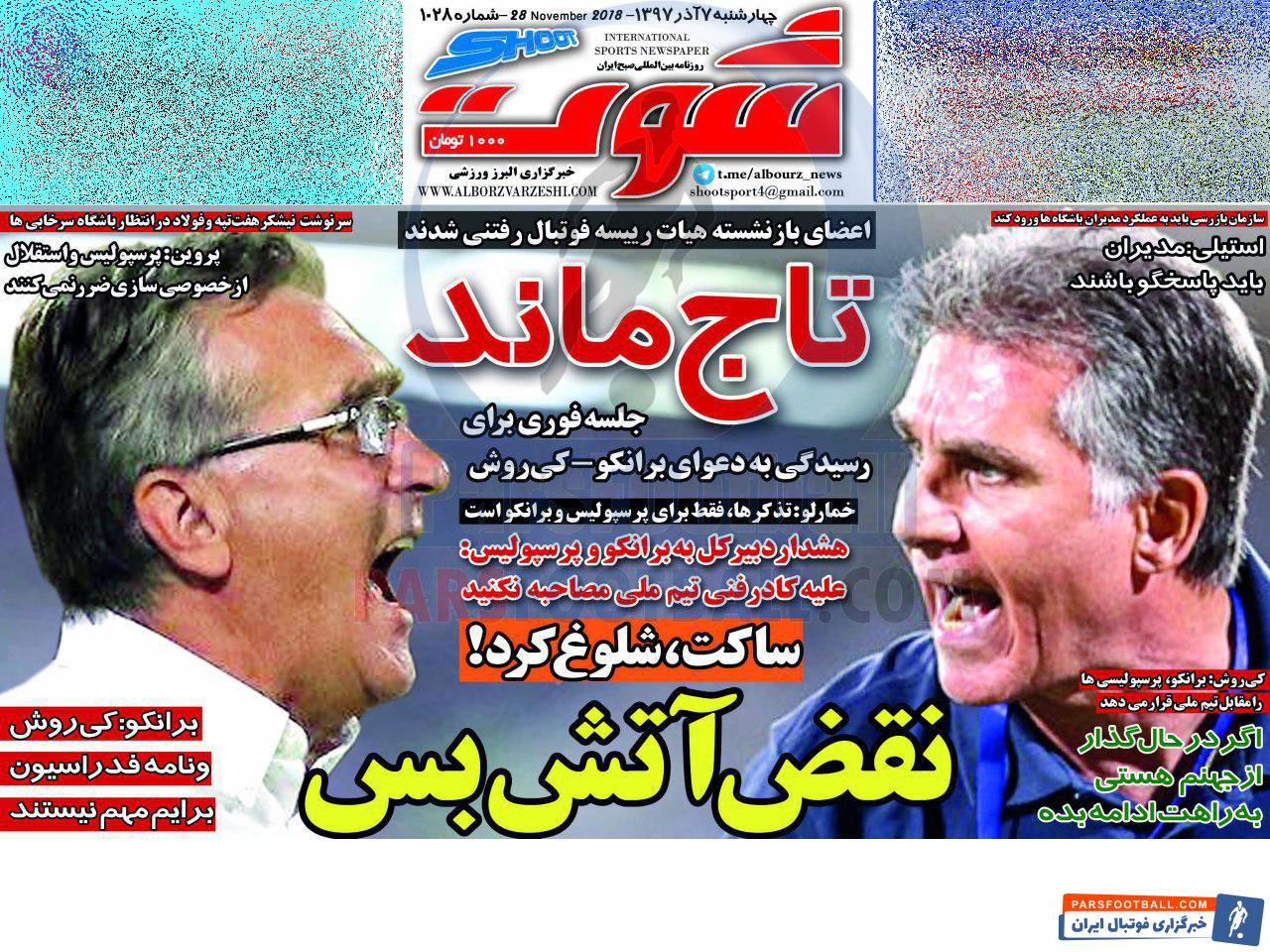 گیشه اخبار داخلی پارس فوتبال همه روزه به بررسی نشریات ورزشی می پردازد. به بررسی روزنامه شوت می پردازیم.