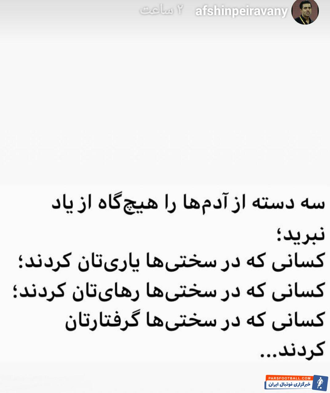 پیروانی نیز امروز در اولین واکنش نسبت به اتفاقات رقم خورده، سراغ صفحه اینستاگرام خود رفت و نوشت: