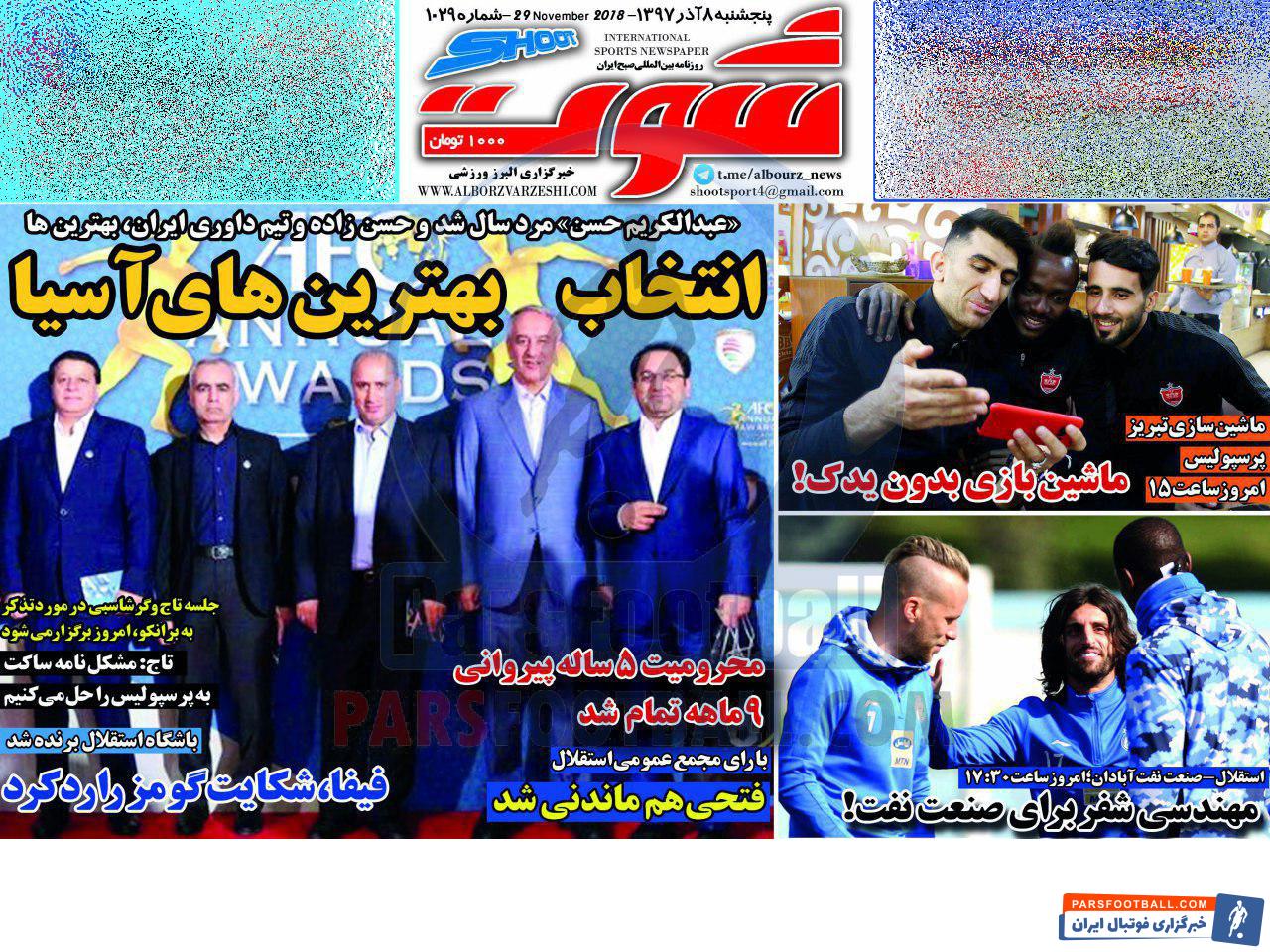 عناوین روزنامه شوت پنجشنبه ۸ آذر ماه به شرح زیر است :