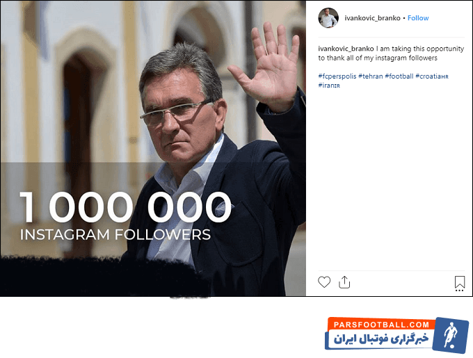 برانکو ایوانکویچ سرمربی کروات پرسپولیس که این روز‌ها ار محبوبیت زیادی هم در بین هواداران این باشگاه برخوردار است با انتشار پستی در اینستاگرامش از هواداران تشکر کرد و نوشت: