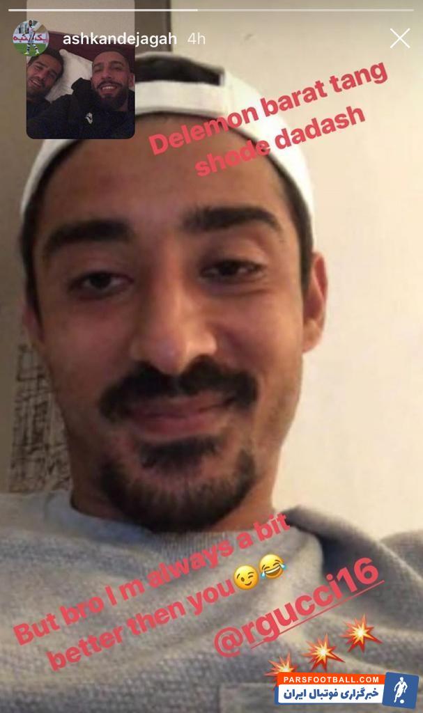 اشکان دژاگه که معمولا با رضا شوخی می کند برایش در این استوری نوشته؛