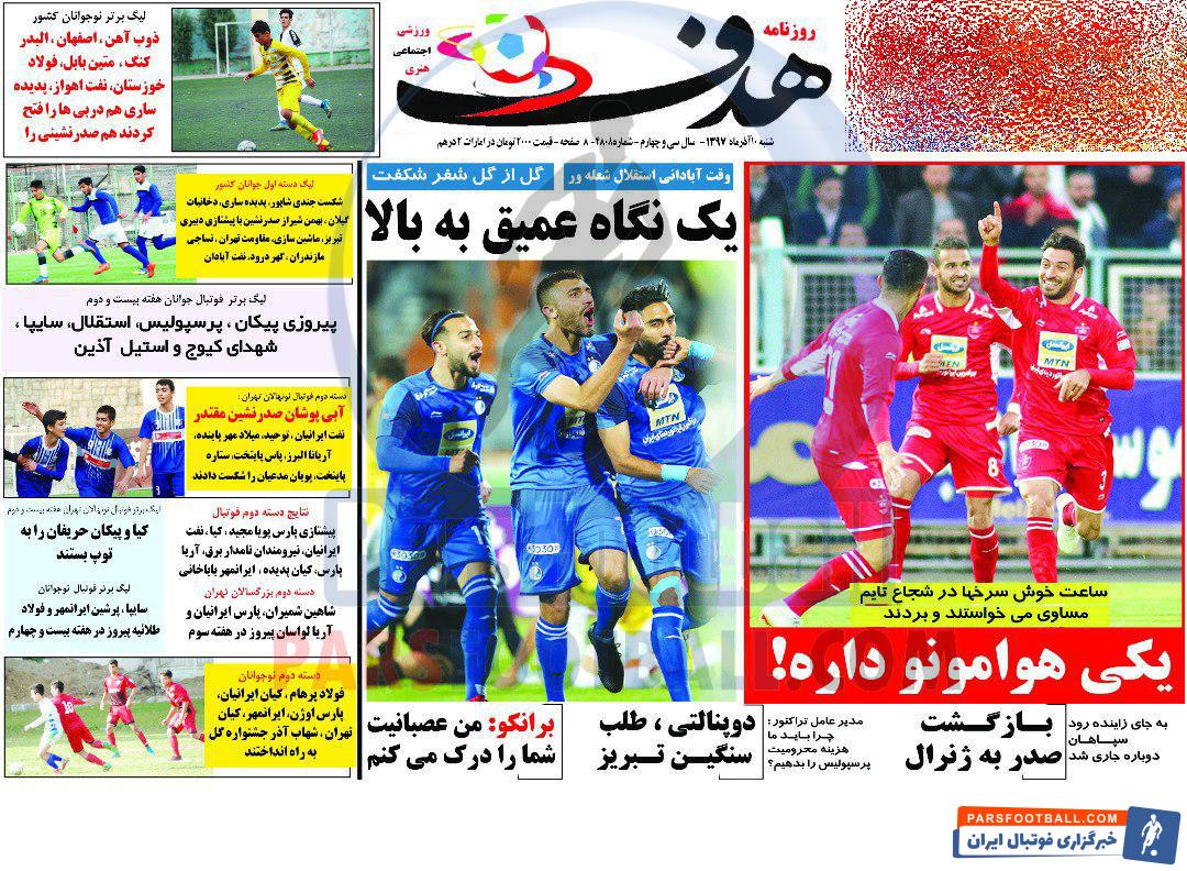 عناوین روزنامه هدف ورزشی شنبه ۱۰ آذر ماه به شرح زیر است :