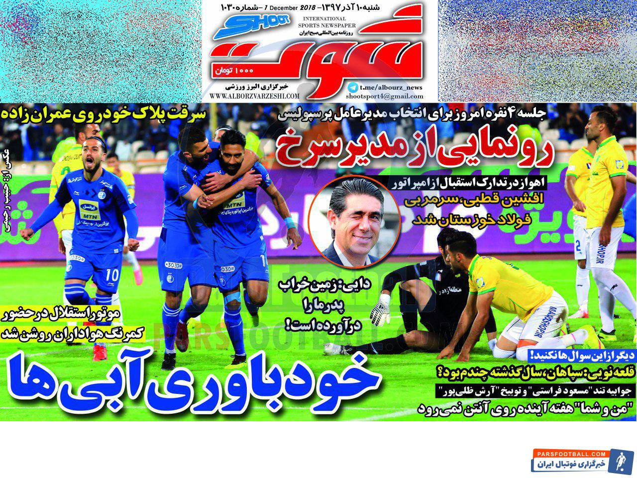عناوین روزنامه شوت شنبه ۱۰ آذر ماه به شرح زیر است :