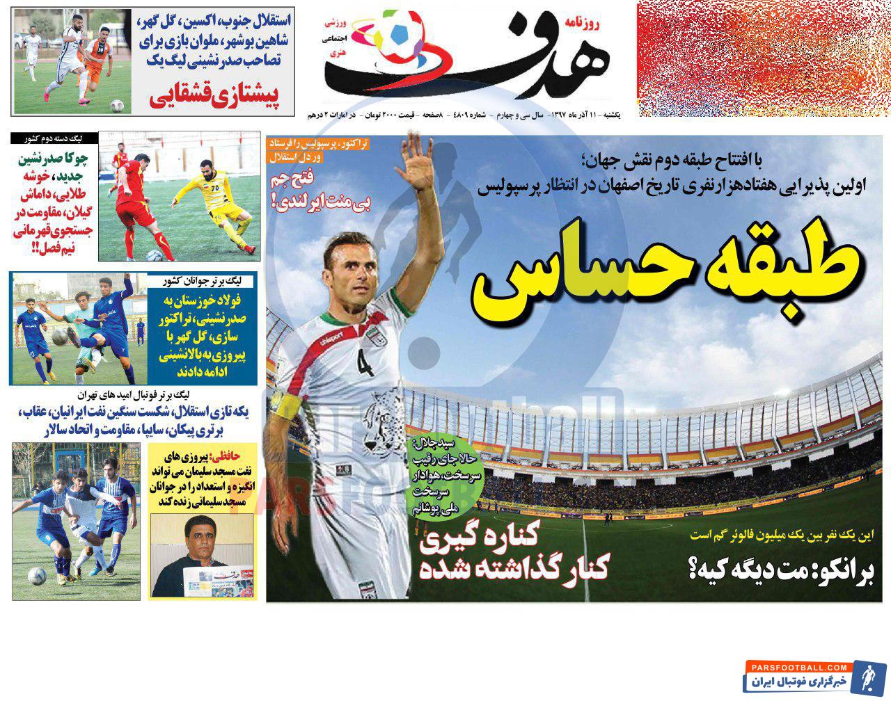عناوین روزنامه هدف ورزشی یکشنبه ۱۱ آذر ماه به شرح زیر است :