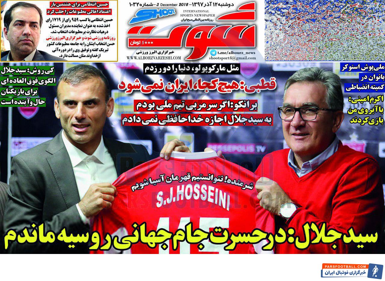 عناوین روزنامه شوت دوشنبه ۱۲ آذر ماه به شرح زیر است :