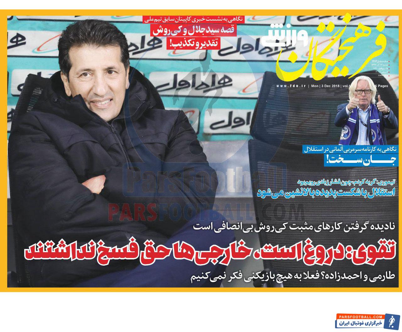 عناوین روزنامه فرهیختگان ورزشی دوشنبه ۱۲ آذر ماه به شرح زیر است :