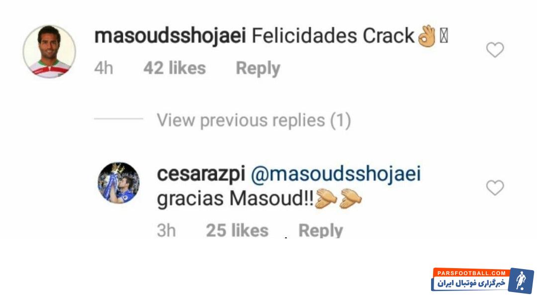 مسعود شجاعی به زبان اسپانیایی به سزار آسپلیکوئتا تبریک گفت
