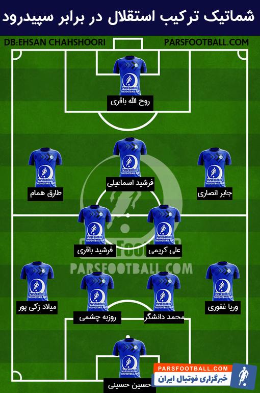 ترکیب استقلال تهران برابر سپیدرود رشت موفق شد و جابر انصاری نیز پس از مدت ها نیمکت نشینی، در این دیدار حضور دارد.