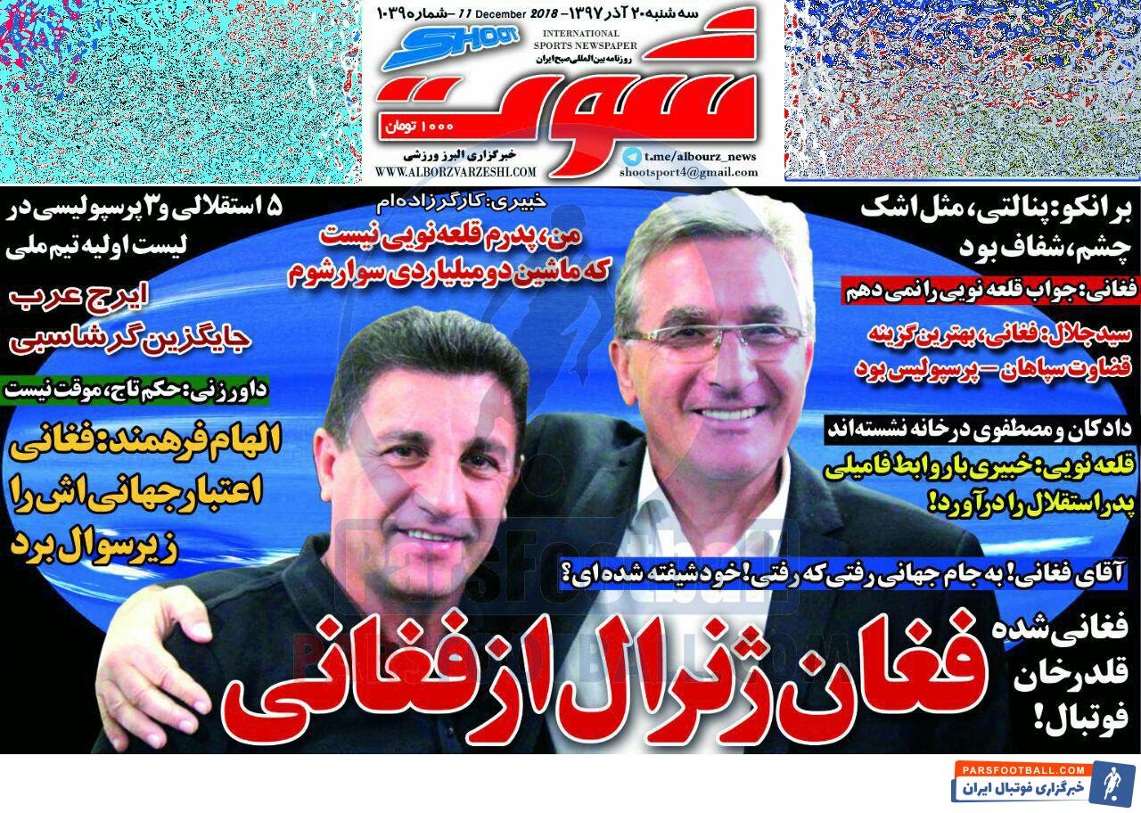 عناوین روزنامه شوت سه شنبه ۲۰ آذر ماه به شرح زیر است :