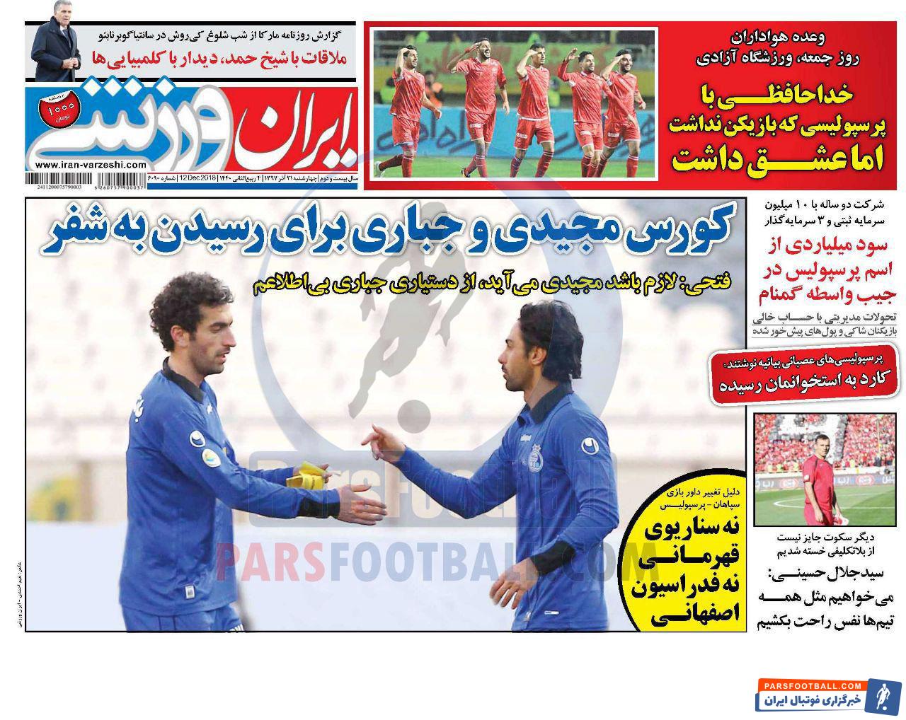 عناوین مهم روزنامه ایران ورزشی چهارشنبه ۲۱ آذر: