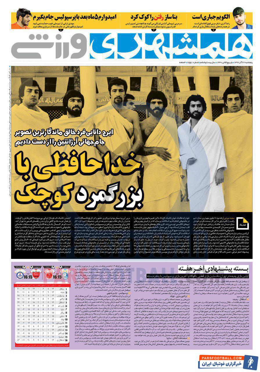 عناوین روزنامه همشهری ورزشی پنجشنبه ۲۲ آذر ماه به شرح زیر است :