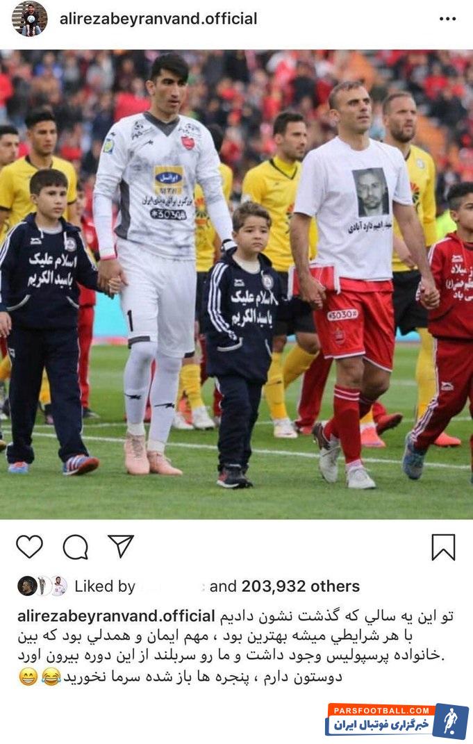 بیرانوند در پایان به شوخی نوشت: