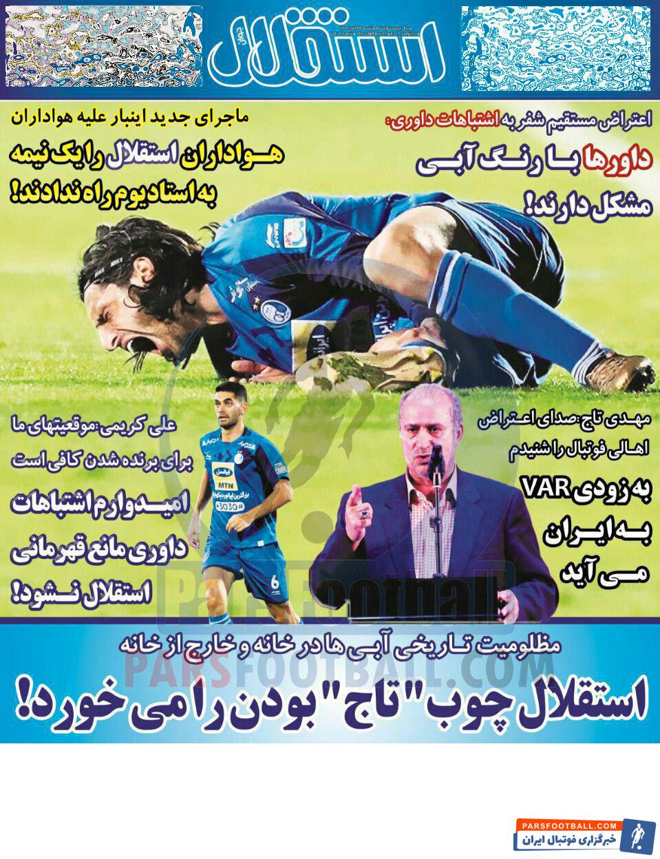 عناوین روزنامه استقلال جوان شنبه ۲۴ آذر ماه به شرح زیر است :