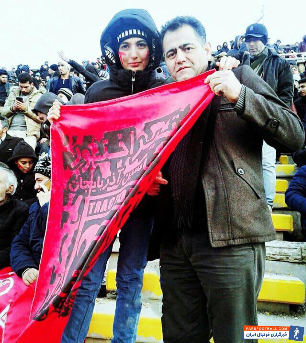 اختصاصی پارس فوتبال؛ تصویری از دو دختر هوادار تراکتورسازی در ورزشگاه یادگار امام تبریز !