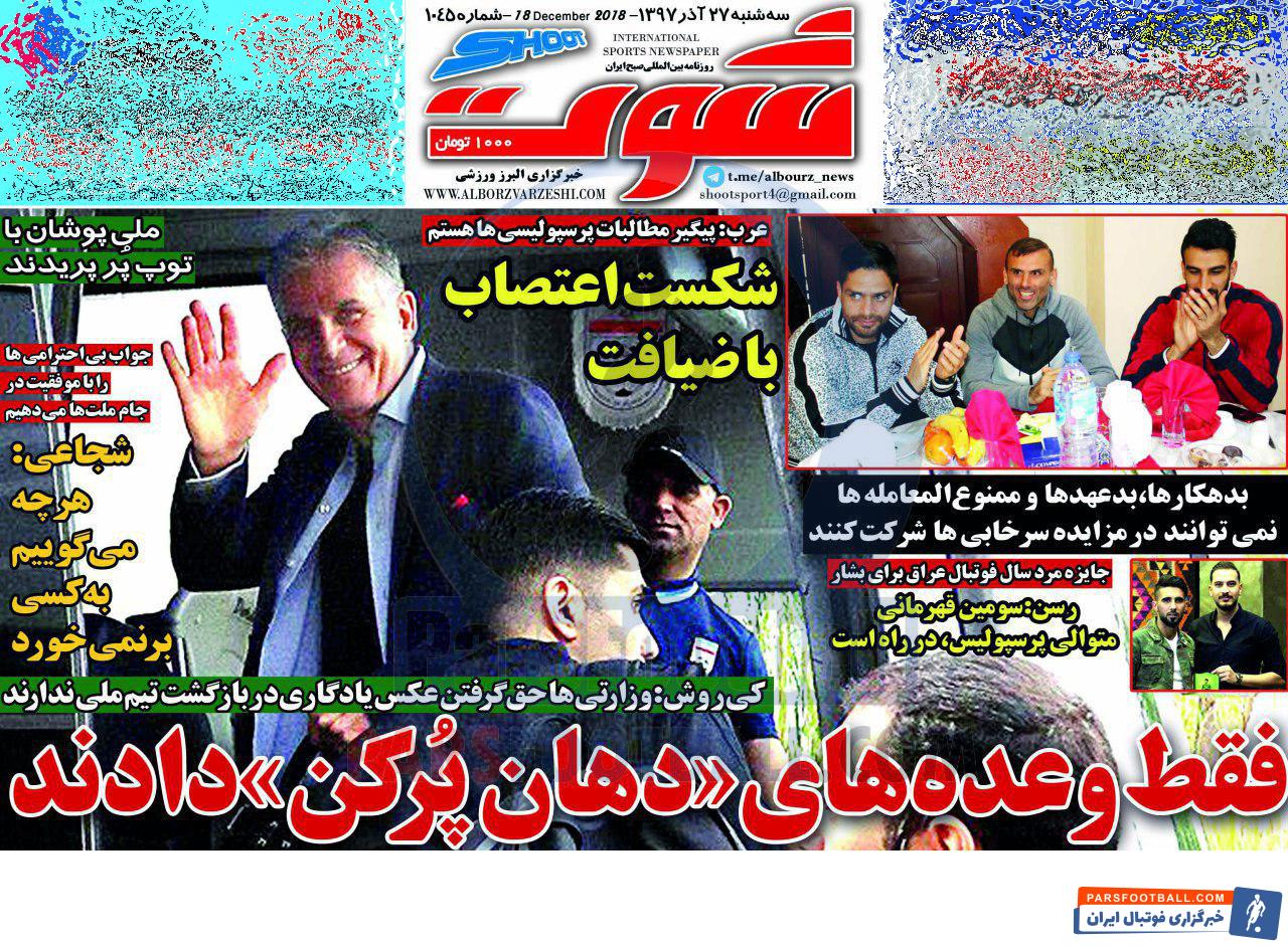 عناوین روزنامه شوت سه شنبه ۲۷ آذر ماه به شرح زیر است :