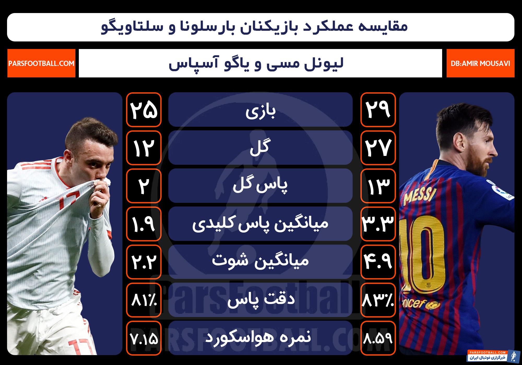اینفوگرافی؛ مقایسه عملکرد لیونل مسی و یاگو آسپاس به بهانه دیدار دو تیم بارسلونا و سلتاویگو