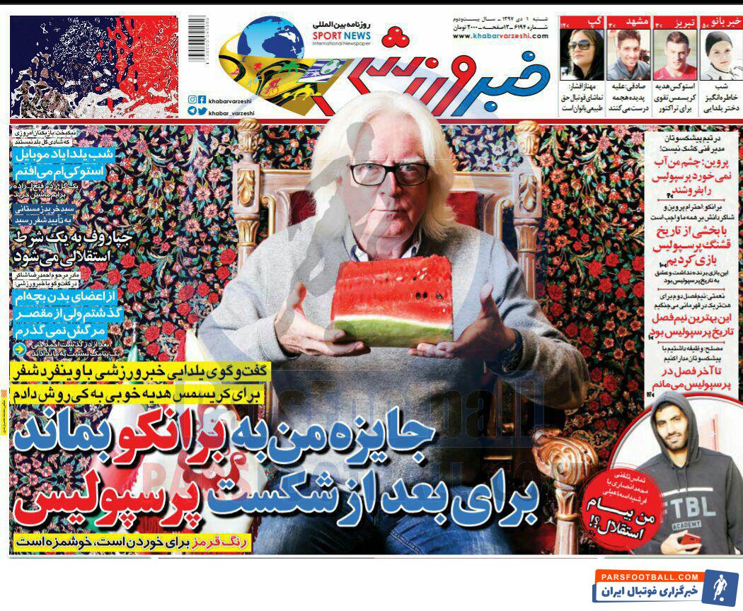 عناوین روزنامه خبر ورزشی شنبه ۱ دی ماه به شرح زیر است :