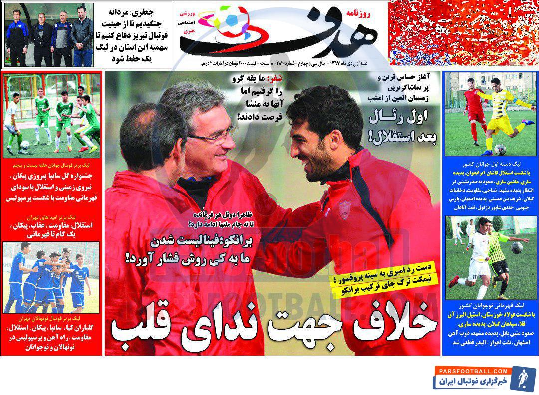 عناوین روزنامه هدف ورزشی شنبه ۱ دی ماه به شرح زیر است :