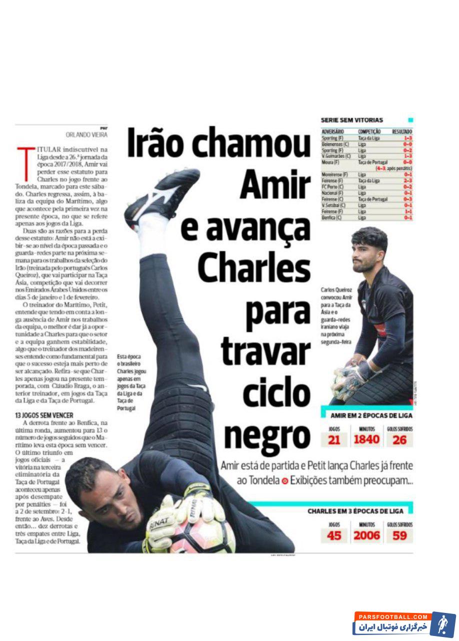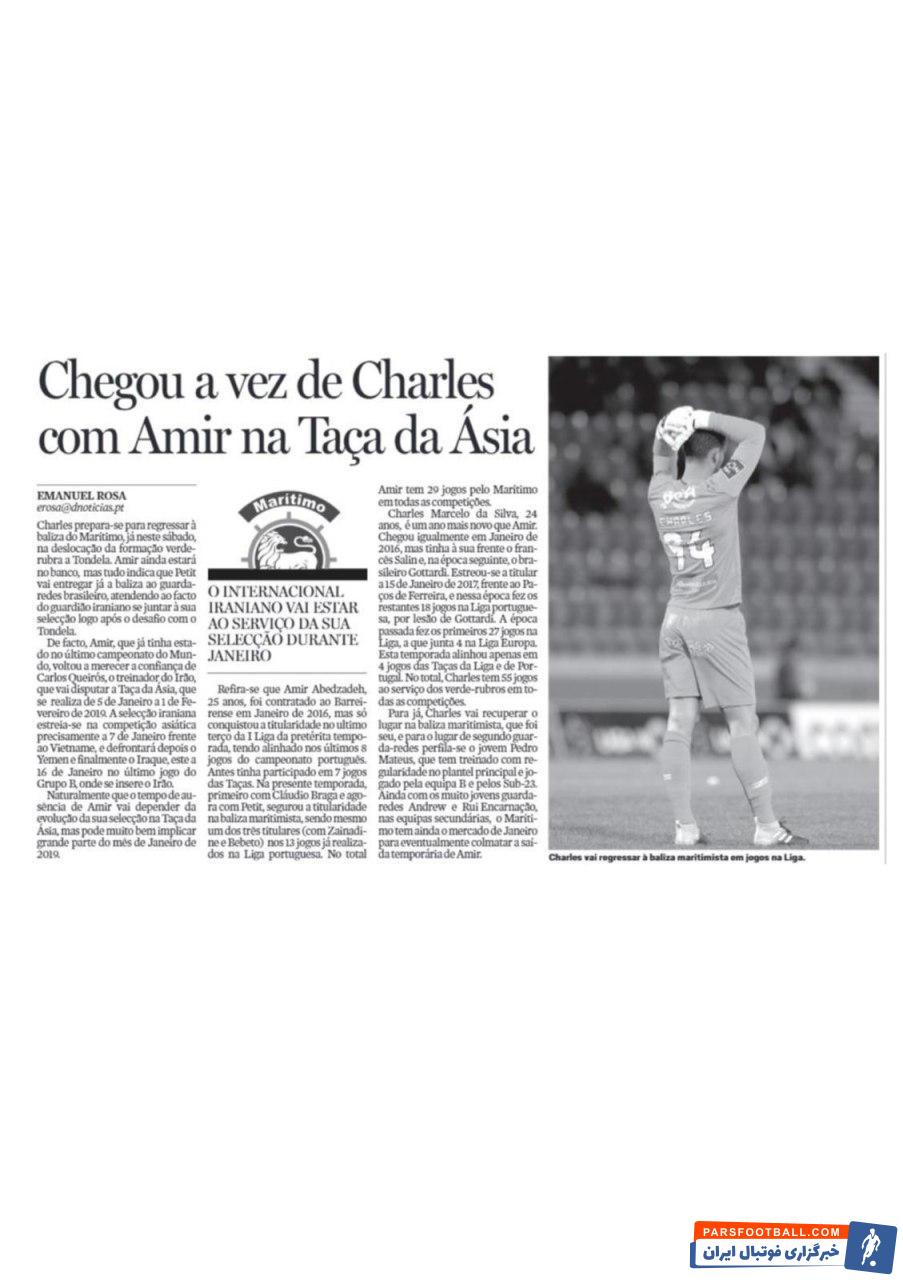 بعید است که باشگاه های اروپایی به بازیکنان آسیایی شان اجازه ندهند که در رقابت های جام ملت های آسیا حضور داشته باشند اما این موضوع باعث شده برخی از این بازیکنان در حالی که زمان زیادی به بازی های جام ملت ها نمانده است در باشگاه هایشان با چالش هایی مواجه شوند. امیرعابدزاده یکی از همین بازیکنان است که جام ملت ها ممکن است باعث شود که بازی امشب تیمش برابر براگا که یک بازی بسیار سخت برای ماریتیمو است را از دست بدهد. در فاصله حدود پانزده روز تا آغاز جام ملت های آسیا ، روزنامه های پرتغالی درباره بازی حساس امشب ماریتیمو برابر براگا نوشتند که احتمالا سرمربی ماریتیمو به دروازه بان دوم این تیم چارلز برزیلی بازی بدهد.
