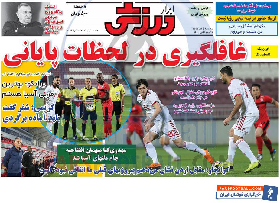 عناوین روزنامه ابرار ورزشی سه شنبه ۴ دی ماه به شرح زیر است :