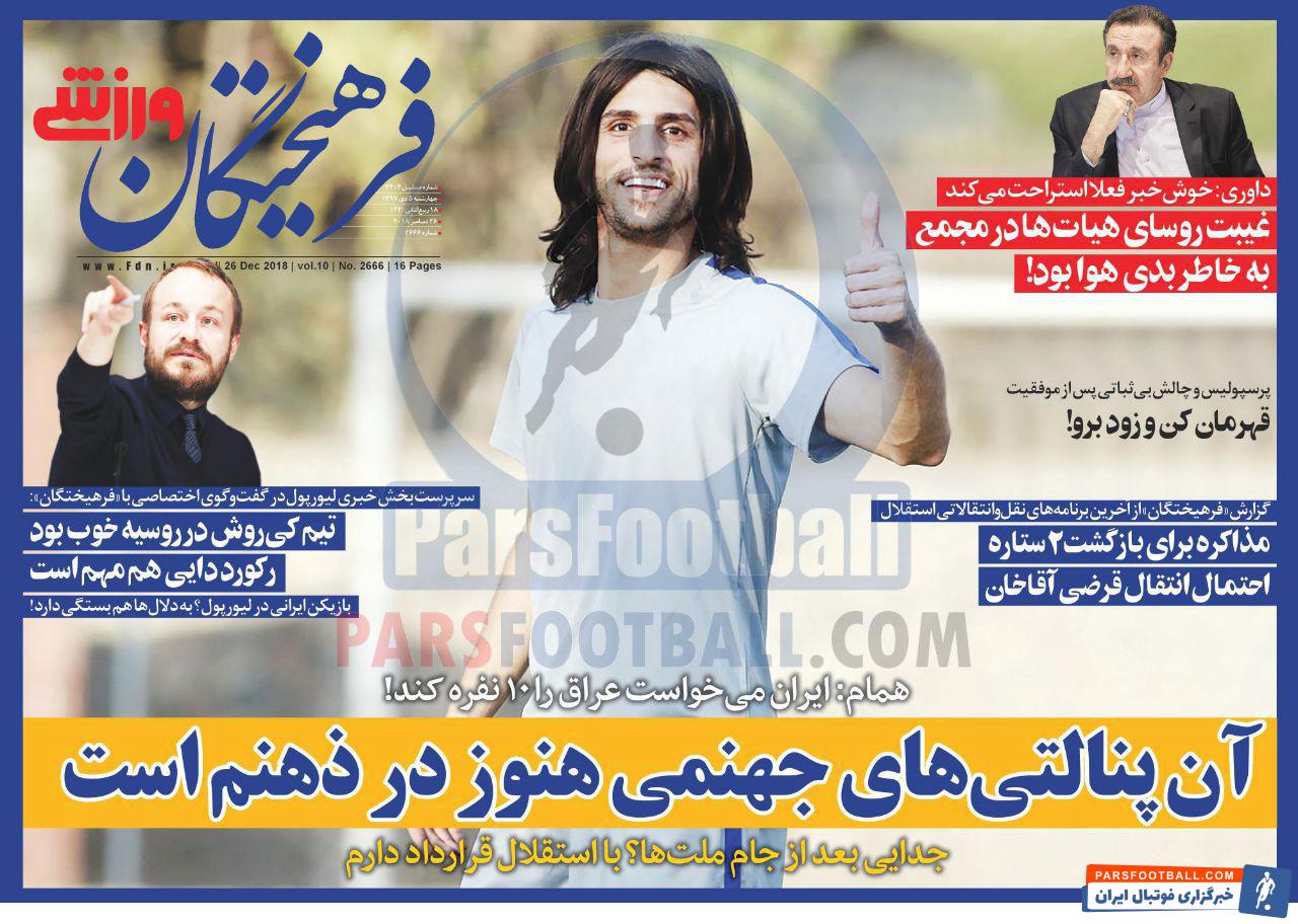 عناوین روزنامه فرهیختگان ورزشی چهارشنبه ۵ دی ماه به شرح زیر است :
