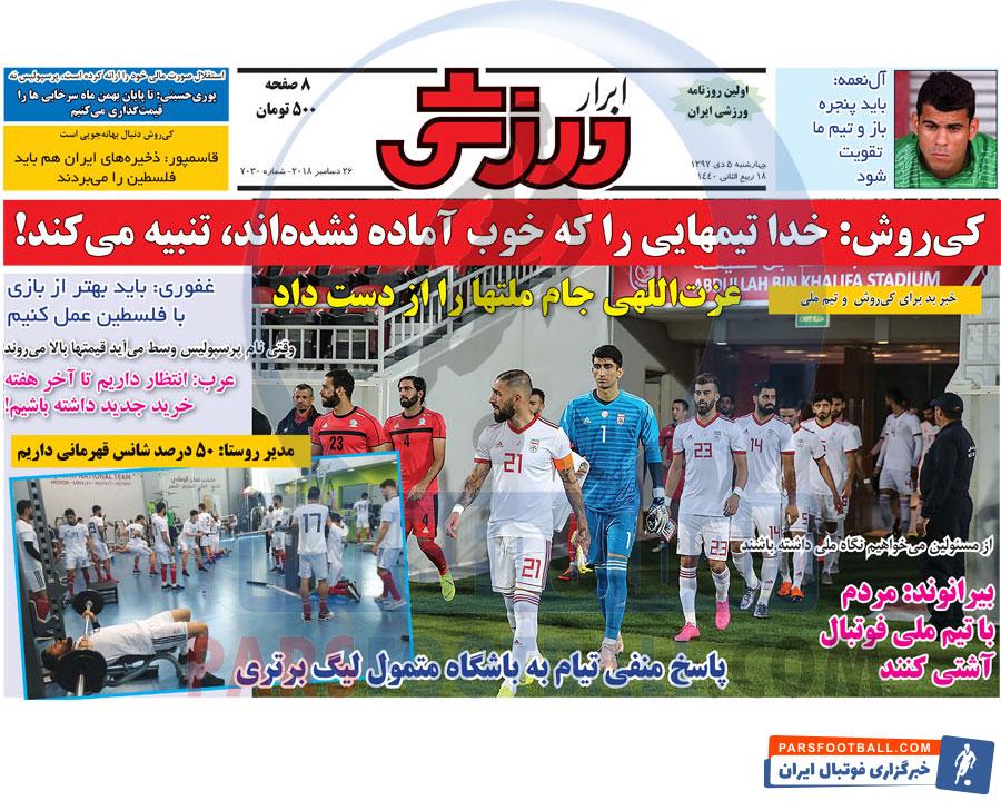 عناوین روزنامه ابرار ورزشی چهارشنبه ۵ دی ماه به شرح زیر است :