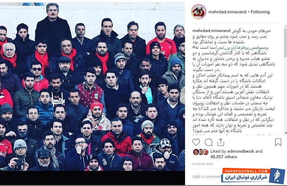عکس ؛ جدیدترین افشاگری میناوند علیه باند مافیایی درون پرسپولیس : خبرهای خوبی به گوش نمی رسد !