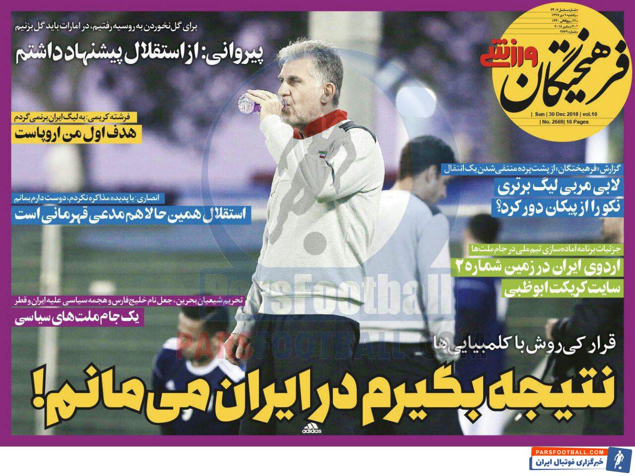 عناوین روزنامه فرهیختگان ورزشی یکشنبه ۹ دی ماه به شرح زیر است :
